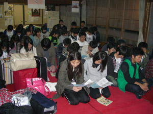 毎年春休みになると、三重県津市-身田の本山からは、元気な中学生が教化合宿で本寺に一泊します。